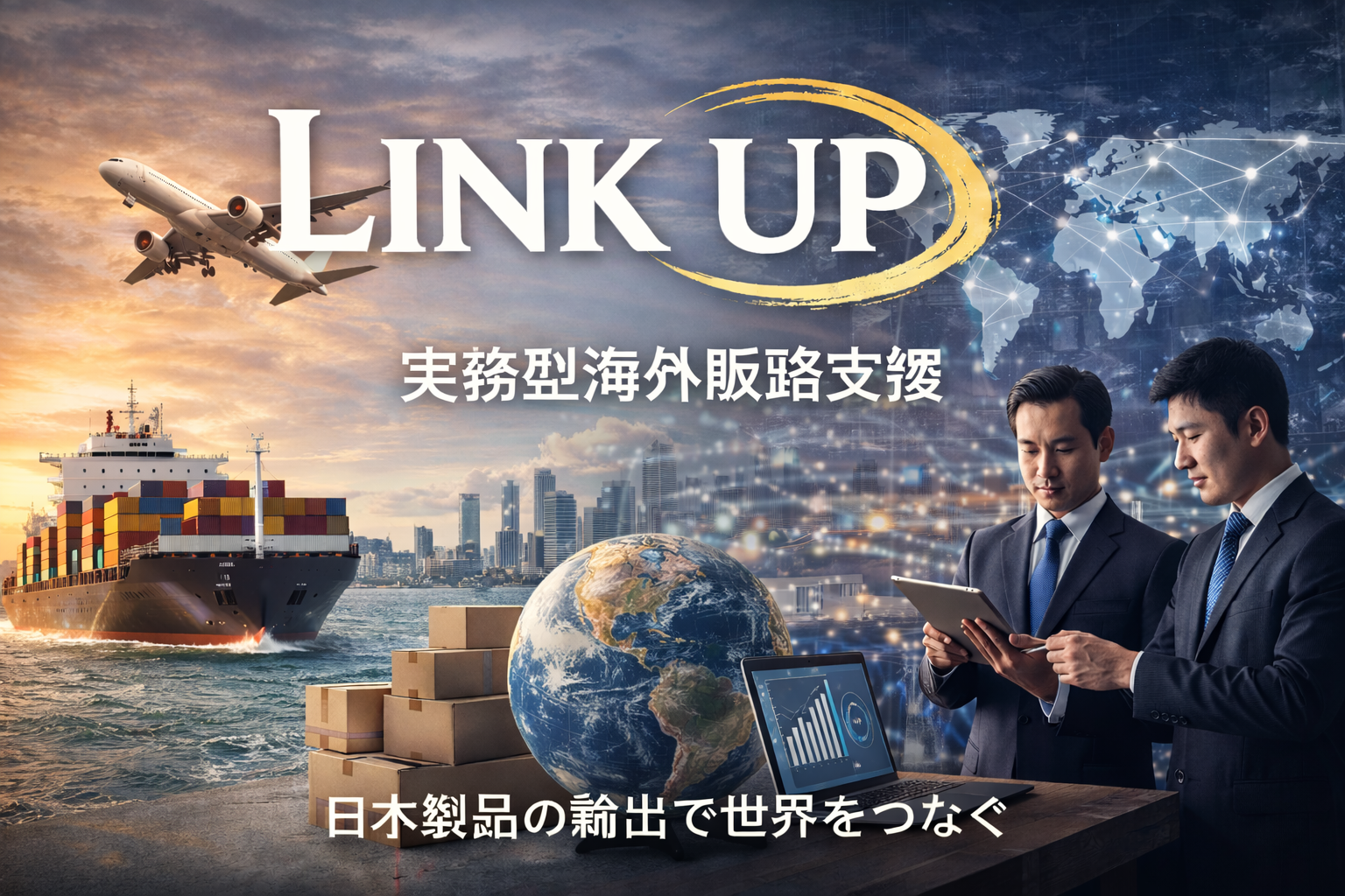 LINK UPは、中小企業向けに海外販路拡大およびDX推進を支援するコンサルティングチームです。